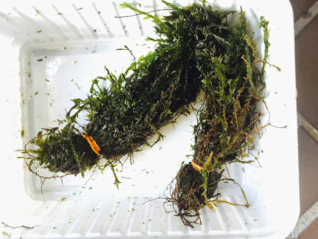 Etwas fehlt aber noch. Das Quellmoos! Es kam ganz zum Schluss, ebenfalls von Naturagart. Quellmoos ist ein sehr guter Sauerstoffspender, soll aber etwas pingelig bezüglich des Standortes sein. Es hat gerne eine leichte Strömung und soll kalkhaltiges Wasser gut vertragen.